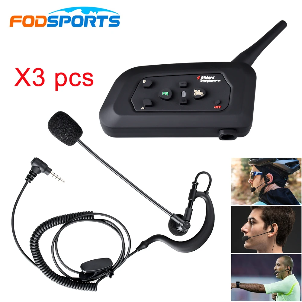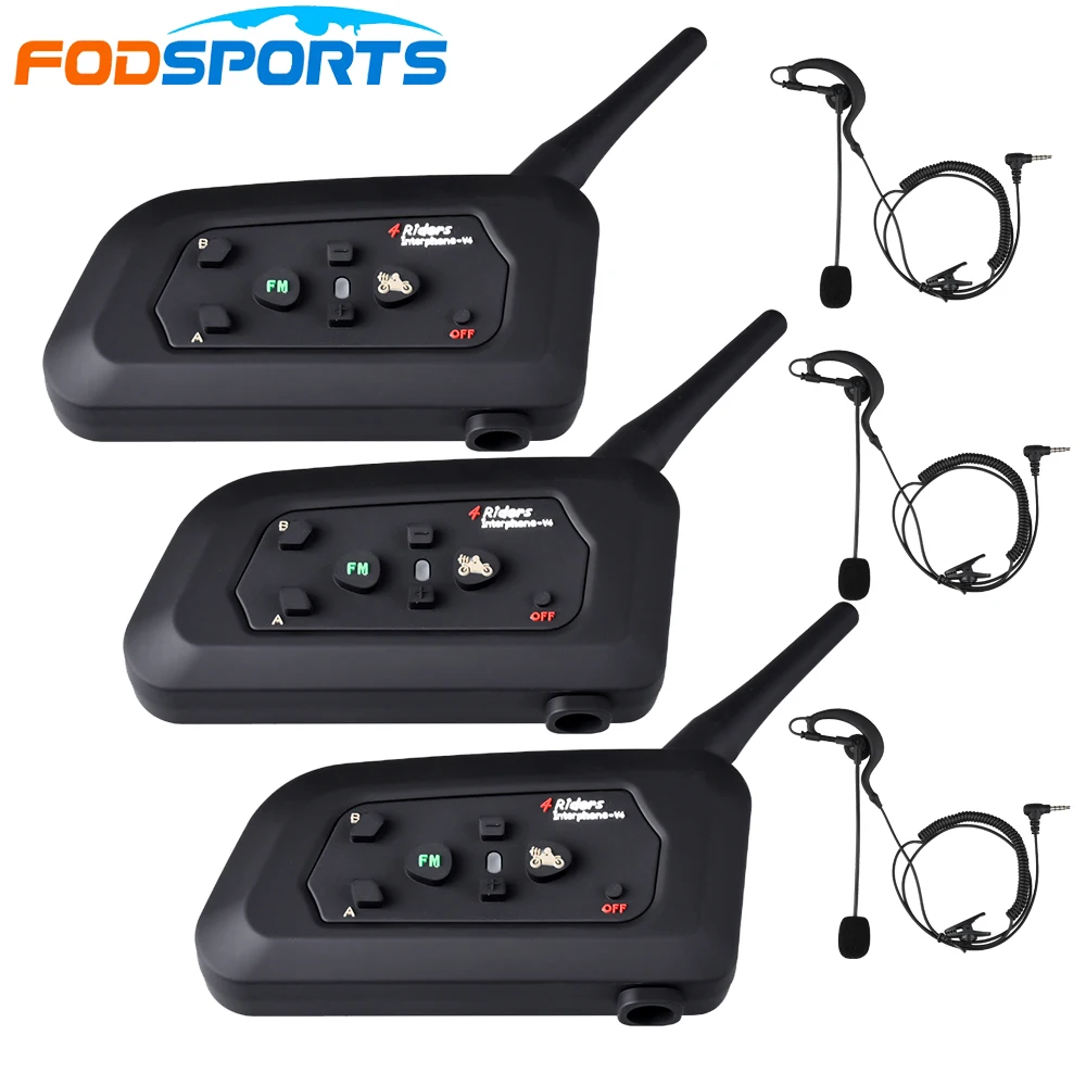 Big Sale 3 pcs Fodsports V4 Intercom FM Waterproof Bluetooth Interphone 1200M 4 Riders Talking For Football