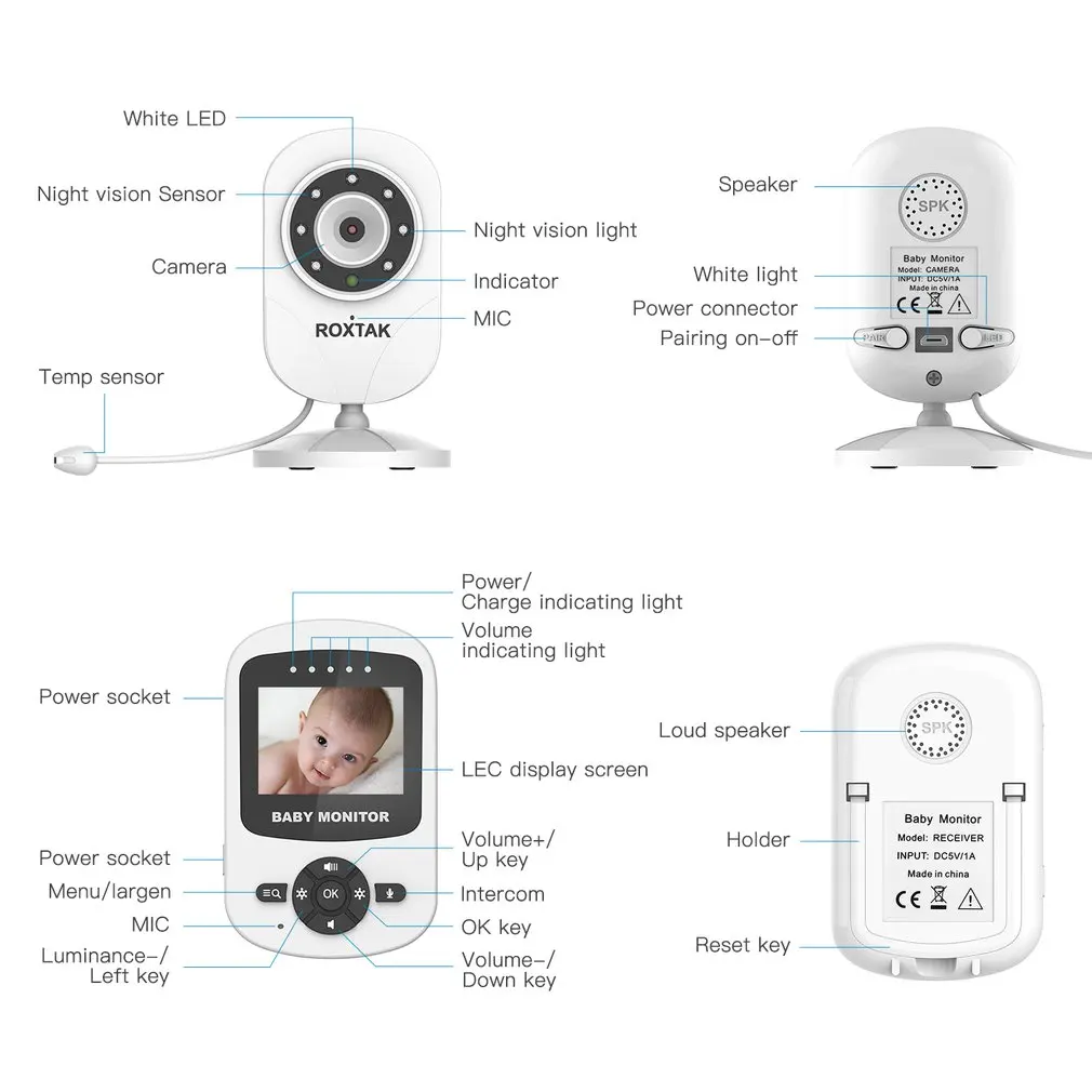 New Arrival Video Baby Monitor with Infrared Night Vision Two Way Talk Back Room Temperature Lullabies Long Ran