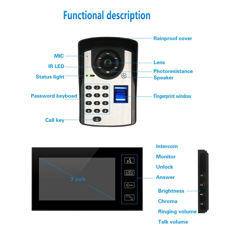Best Price Fingerprint Password Remote Control Video Door Phone Doorbell Intercom Remote Control Unlock Video